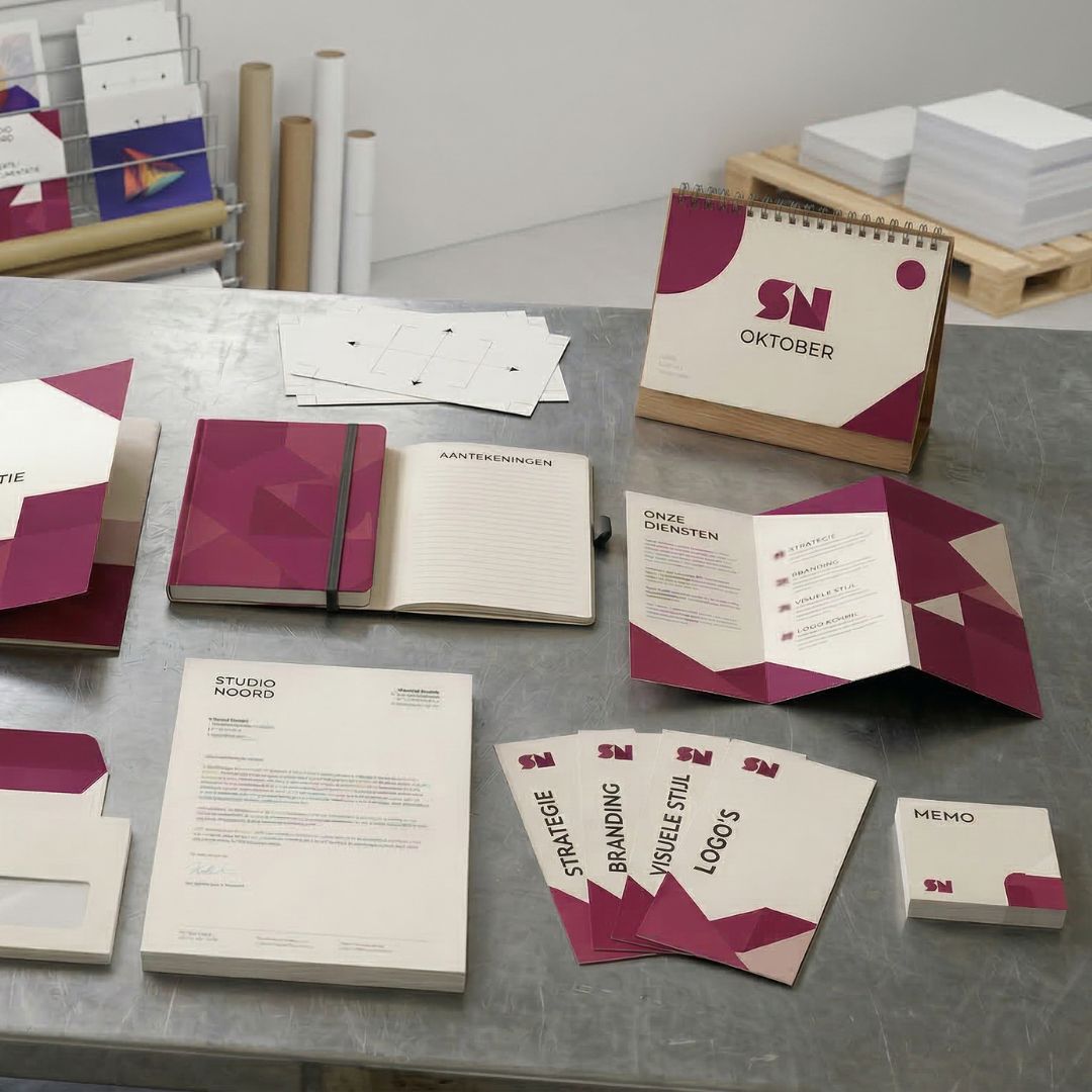 Wil je jouw merk overal herkenbaar maken? Met huisstijl drukwerk zorg je voor een consistente en professionele uitstraling bij elke klant, offerte of verzending. Denk aan visitekaartjes, briefpapier, bedrukte enveloppen, presentatiemappen, notitieboekjes, kalenders, folders en flyers: allemaal ontworpen in één lijn, met dezelfde kleuren, vormen en typografie.